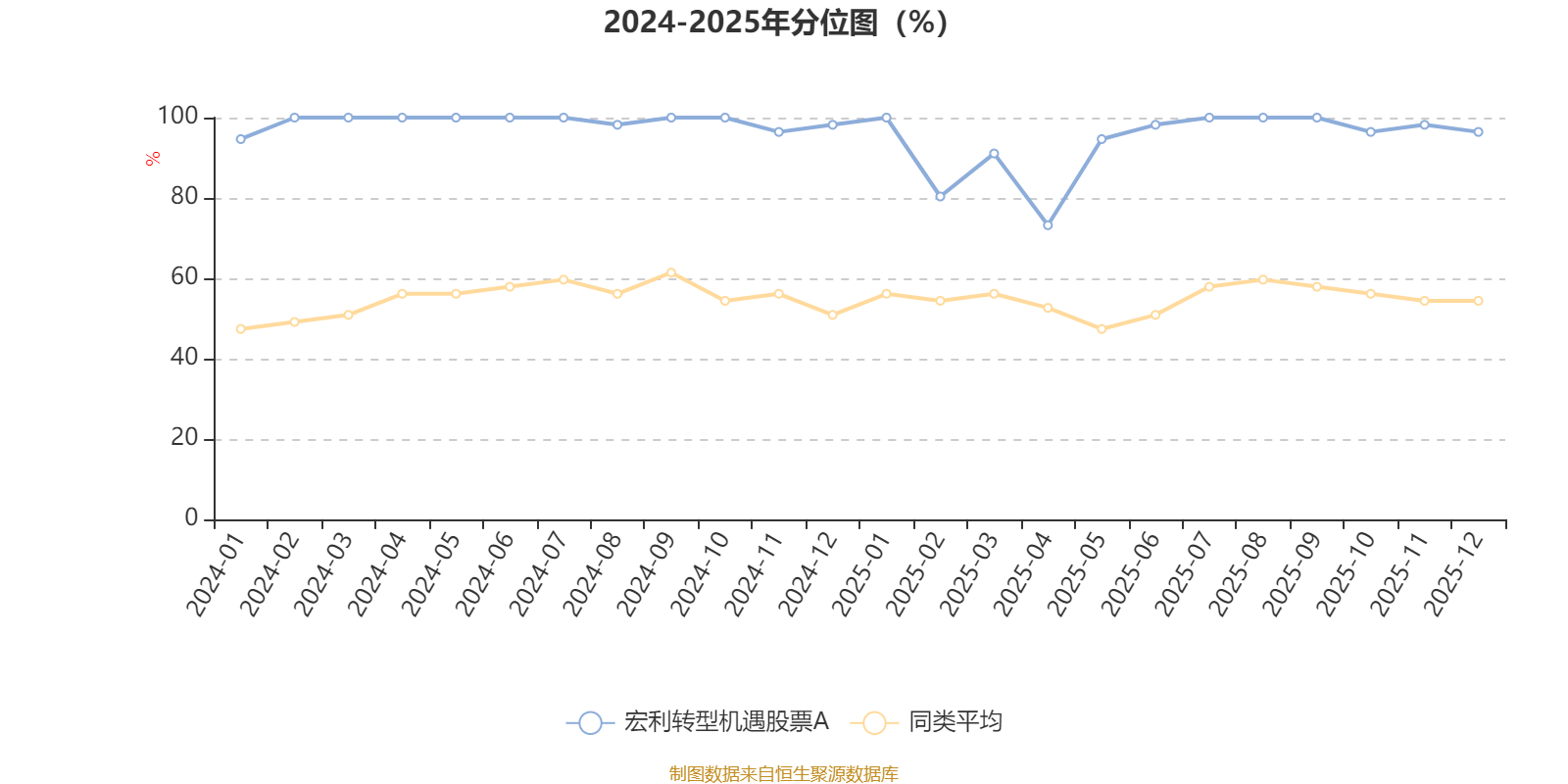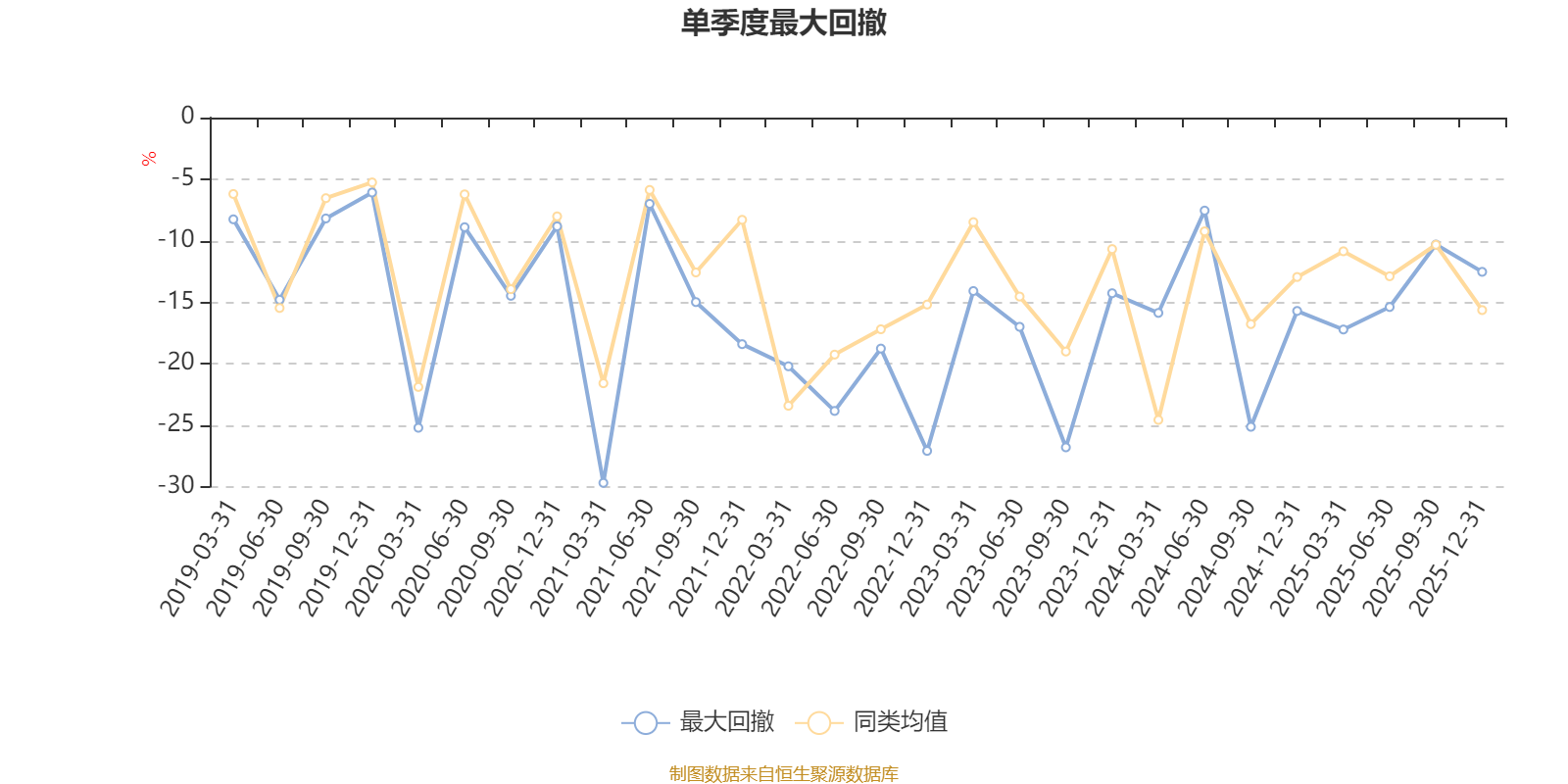 通过所选区间该基金净值增长率分位图,可以观察该基金与同类基金业绩比较情况。图为坐标原点到区间内某时点的净值增长率在同类基金中的分位数。