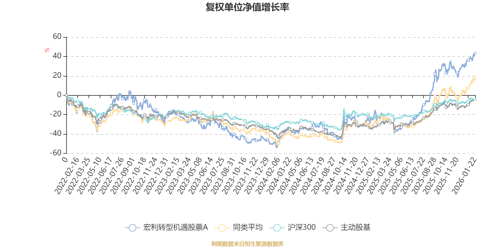 截至1月22日,宏利转型机遇股票A近三个月复权单位净值增长率为13.16%,位于同类可比基金40/63;近半年复权单位净值增长率为58.83%,位于同类可比基金32/63;近一年复权单位净值增长率为69.23%,位于同类可比基金24/62;近三年复权单位净值增长率为75.39%,位于同类可比基金20/52。