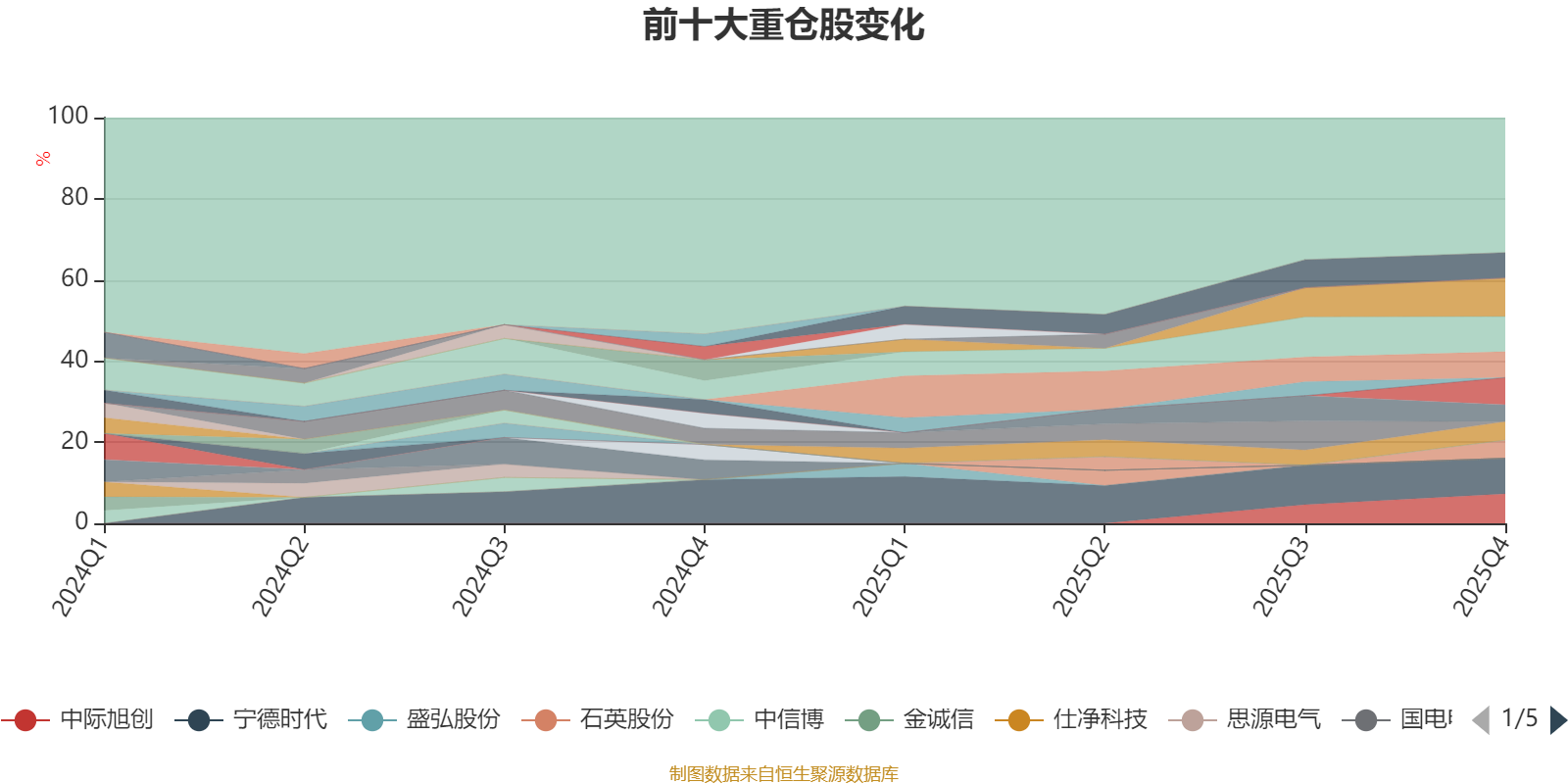 截至2025年四季度末,基金十大重仓股分别是东山精密、宁德时代、阳光电源、中际旭创、天华新能、胜宏科技、华友钴业、紫金矿业、藏格矿业、新易盛。