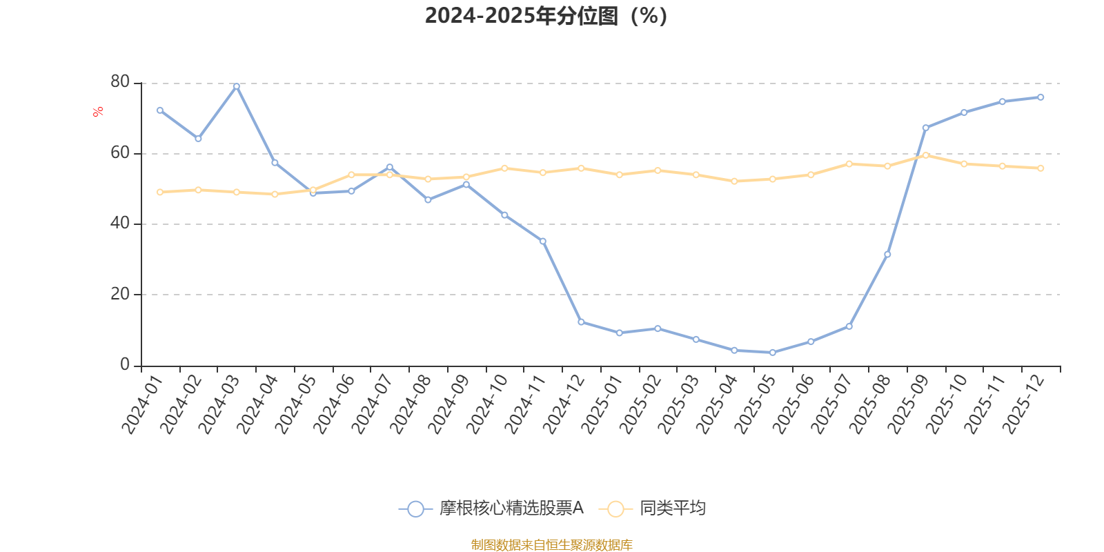 通过所选区间该基金净值增长率分位图,可以观察该基金与同类基金业绩比较情况。图为坐标原点到区间内某时点的净值增长率在同类基金中的分位数。