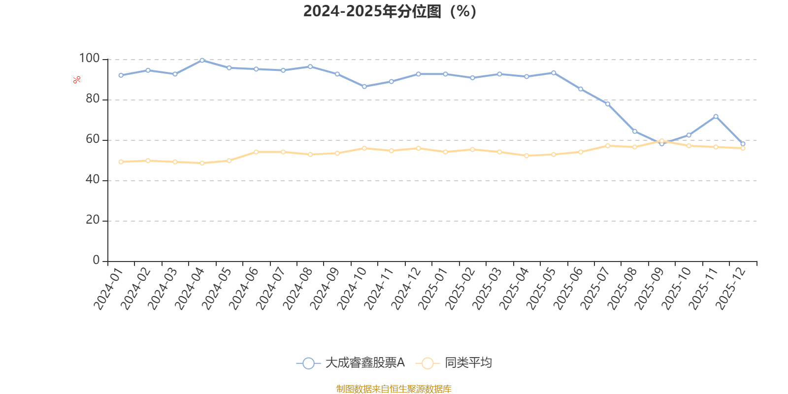 通过所选区间该基金净值增长率分位图,可以观察该基金与同类基金业绩比较情况。图为坐标原点到区间内某时点的净值增长率在同类基金中的分位数。