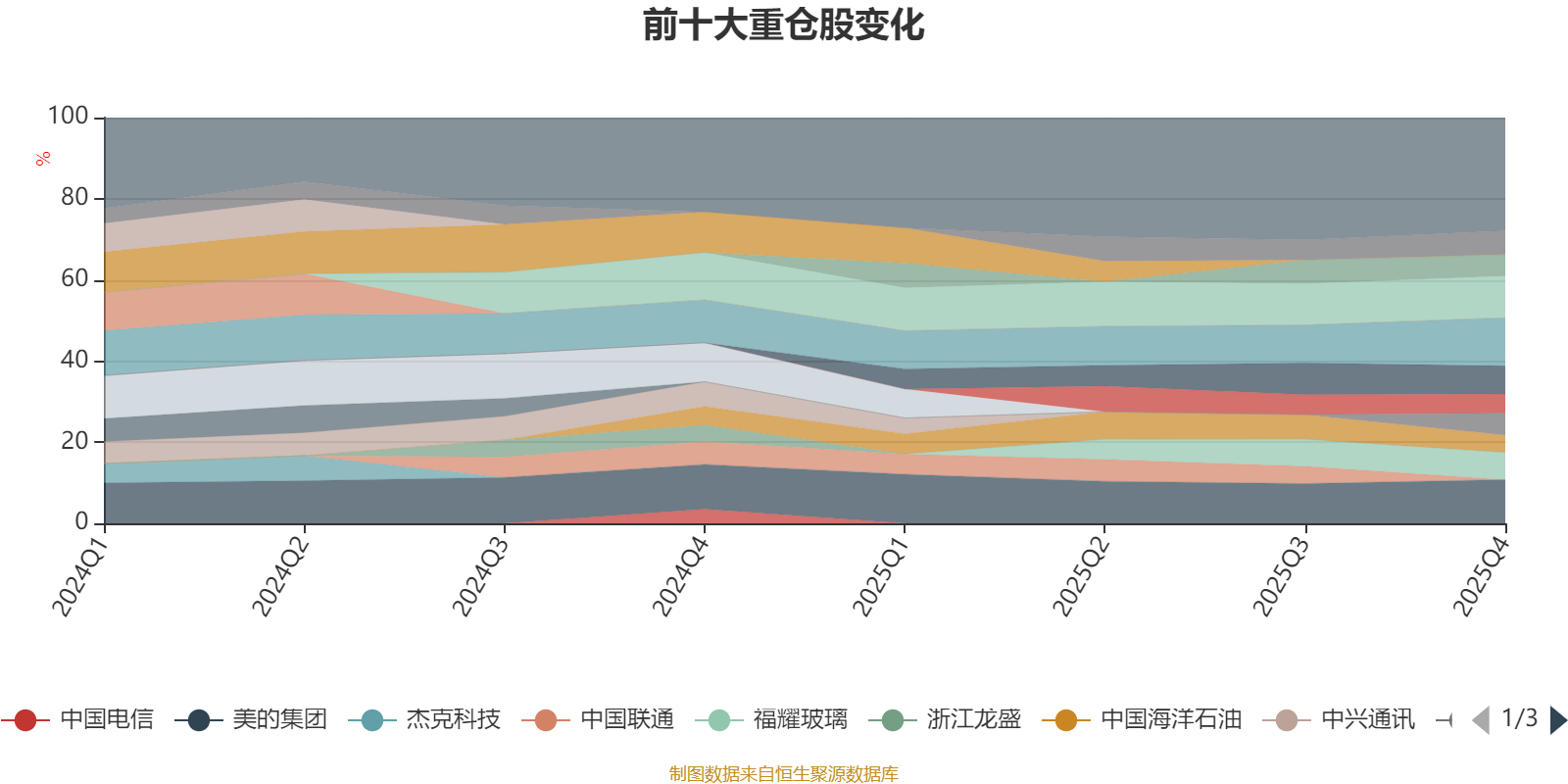 该基金持股集中度较高,近2年前十大重仓股集中度长期超过60%。截至2025年四季度末,基金十大重仓股分别是豪迈科技、美的集团、中国移动、腾讯控股、福耀玻璃、海尔智家、华域汽车、阿里巴巴-W、长和、中国海洋石油。