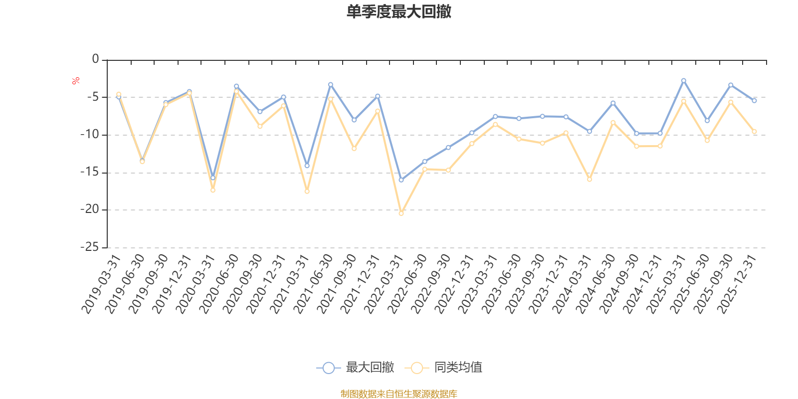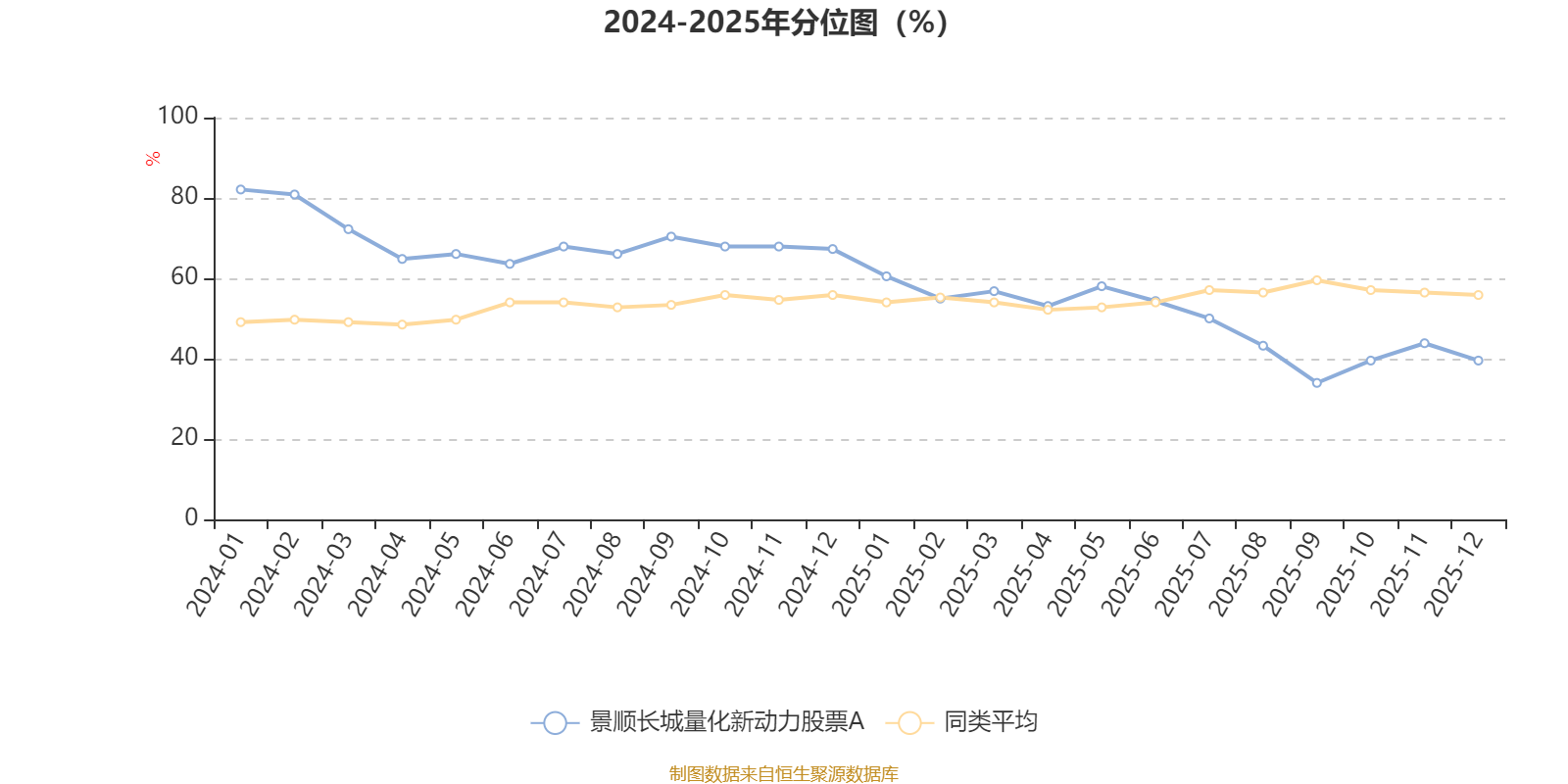 通过所选区间该基金净值增长率分位图,可以观察该基金与同类基金业绩比较情况。图为坐标原点到区间内某时点的净值增长率在同类基金中的分位数。