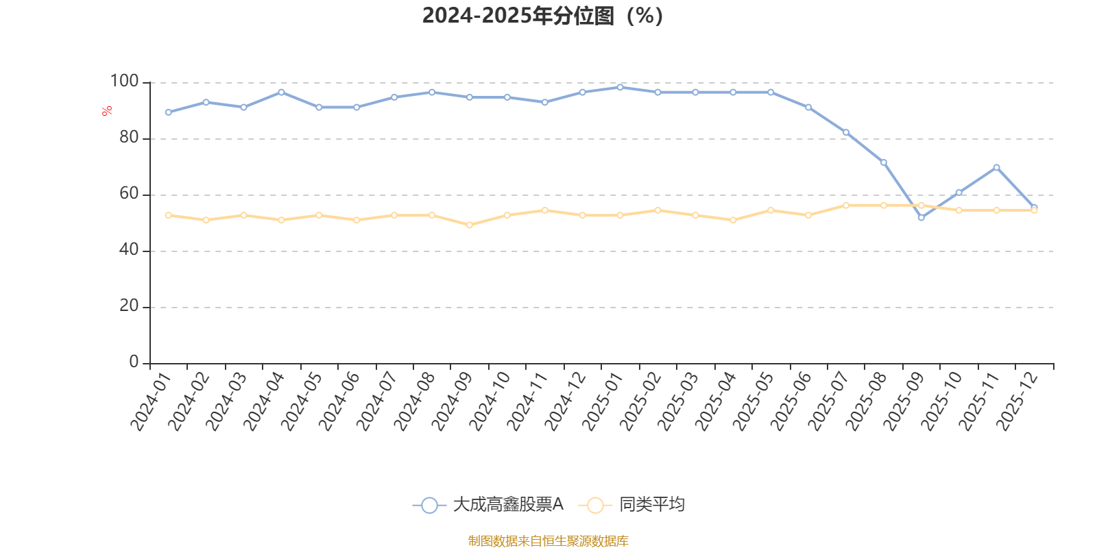 通过所选区间该基金净值增长率分位图,可以观察该基金与同类基金业绩比较情况。图为坐标原点到区间内某时点的净值增长率在同类基金中的分位数。