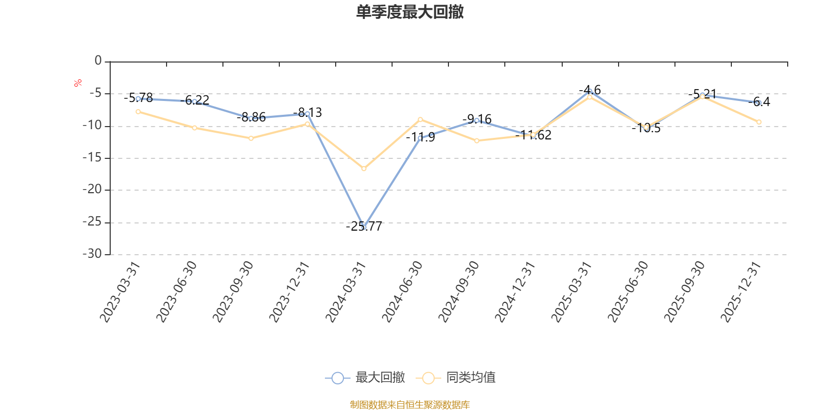 截至1月22日,基金近三年最大回撤为33.61%,同类可比基金排名29/71。单季度最大回撤出现在2024年一季度,为25.77%。