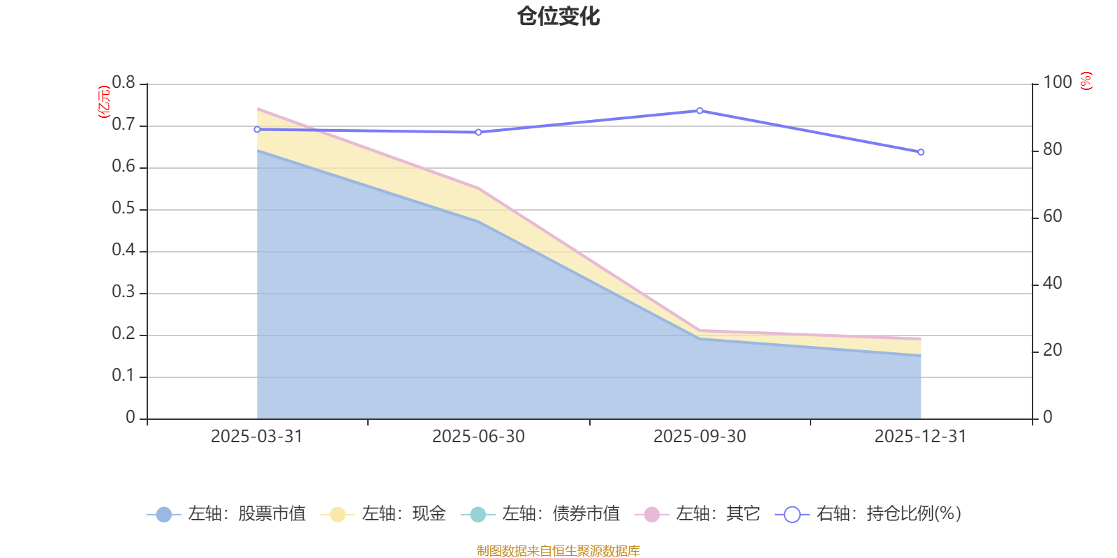 据定期报告数据统计,成立以来平均股票仓位为85.84%,同类平均为88.34%。2025年三季度末基金达到91.95%的最高仓位,2025年末最低,为79.57%。