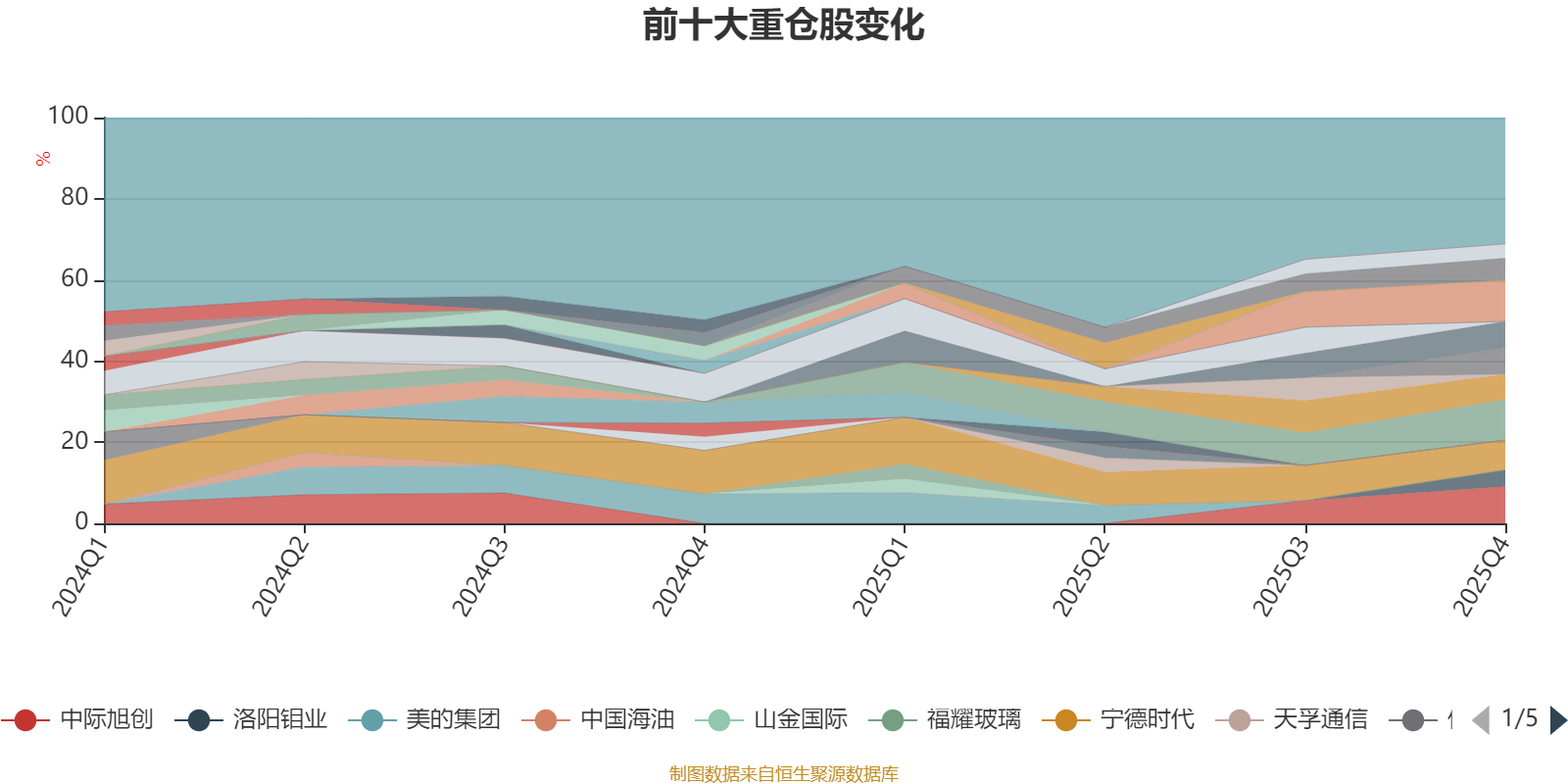 截至2025年四季度末,基金十大重仓股分别是东山精密、紫金矿业、中际旭创、宁德时代、天华新能、胜宏科技、新易盛、纽威股份、洛阳钼业、华友钴业。