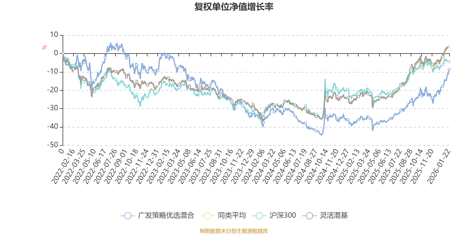 截至1月22日,广发策略优选混合近三个月复权单位净值增长率为17.69%,位于同类可比基金189/1286;近半年复权单位净值增长率为32.31%,位于同类可比基金392/1286;近一年复权单位净值增长率为46.62%,位于同类可比基金370/1286;近三年复权单位净值增长率为-8.43%,位于同类可比基金1123/1286。