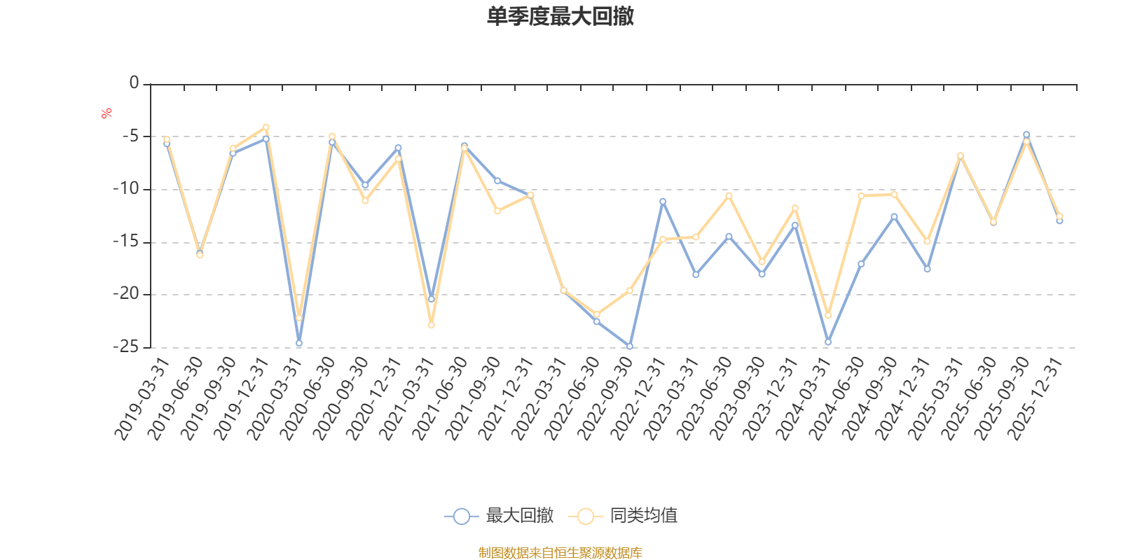 通过所选区间该基金净值增长率分位图,可以观察该基金与同类基金业绩比较情况。图为坐标原点到区间内某时点的净值增长率在同类基金中的分位数。