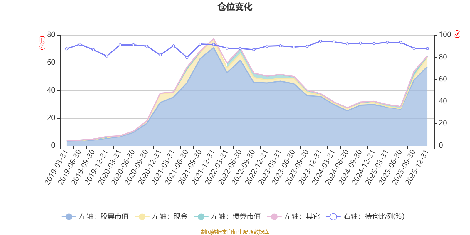 据定期报告数据统计,近三年平均股票仓位为91.63%,同类平均为87.73%。2023年末基金达到94.62%的最高仓位,2021年上半年末最低,为79.98%。