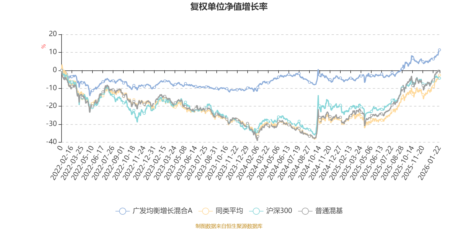 截至1月22日,广发均衡增长混合A近三个月复权单位净值增长率为5.97%,位于同类可比基金89/134;近半年复权单位净值增长率为12.78%,位于同类可比基金96/134;近一年复权单位净值增长率为17.80%,位于同类可比基金95/131;近三年复权单位净值增长率为19.23%,位于同类可比基金58/124。