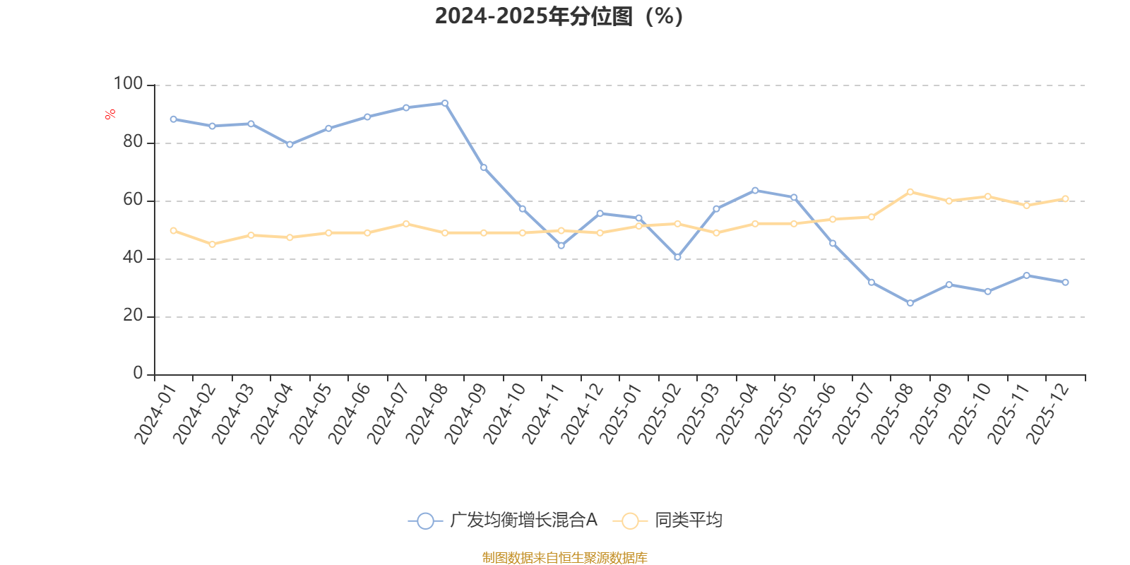 通过所选区间该基金净值增长率分位图,可以观察该基金与同类基金业绩比较情况。图为坐标原点到区间内某时点的净值增长率在同类基金中的分位数。