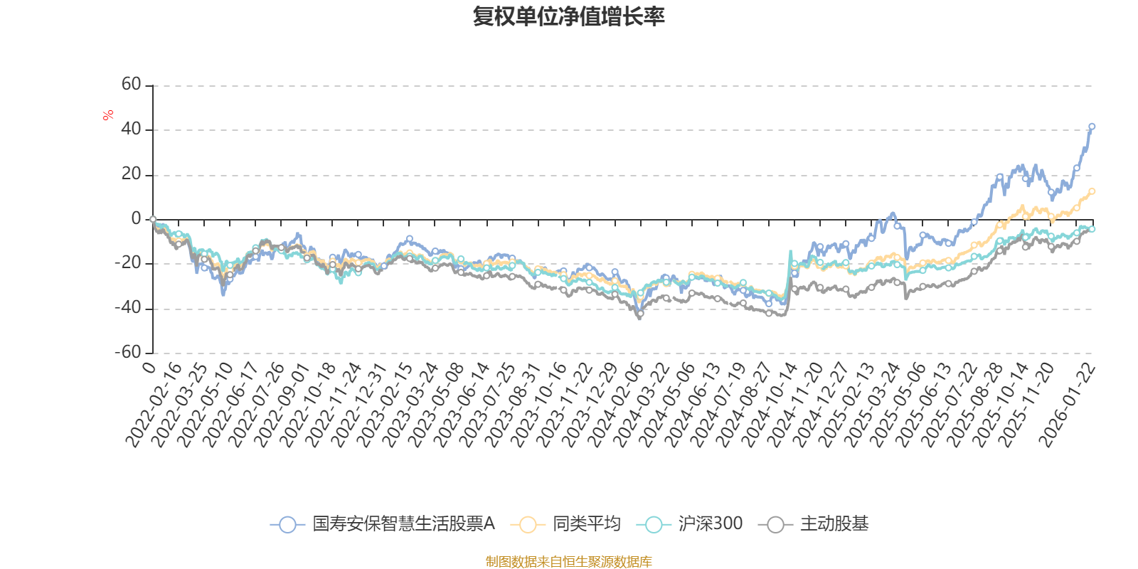 截至1月22日,国寿安保智慧生活股票A近三个月复权单位净值增长率为20.49%,位于同类可比基金3/58;近半年复权单位净值增长率为43.35%,位于同类可比基金11/58;近一年复权单位净值增长率为56.66%,位于同类可比基金17/57;近三年复权单位净值增长率为64.94%,位于同类可比基金7/57。