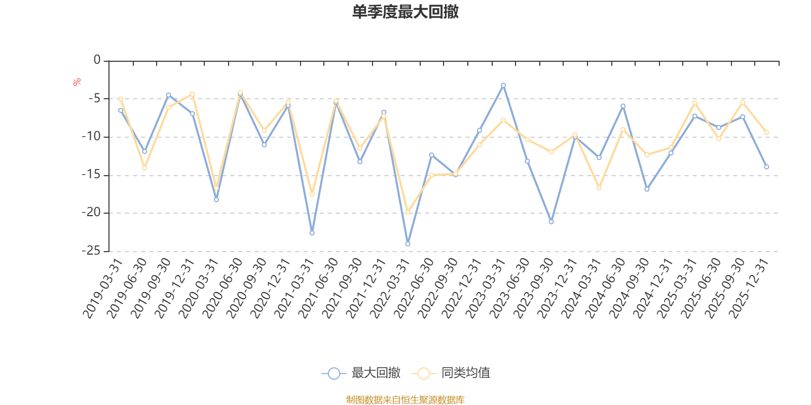 通过所选区间该基金净值增长率分位图,可以观察该基金与同类基金业绩比较情况。图为坐标原点到区间内某时点的净值增长率在同类基金中的分位数。