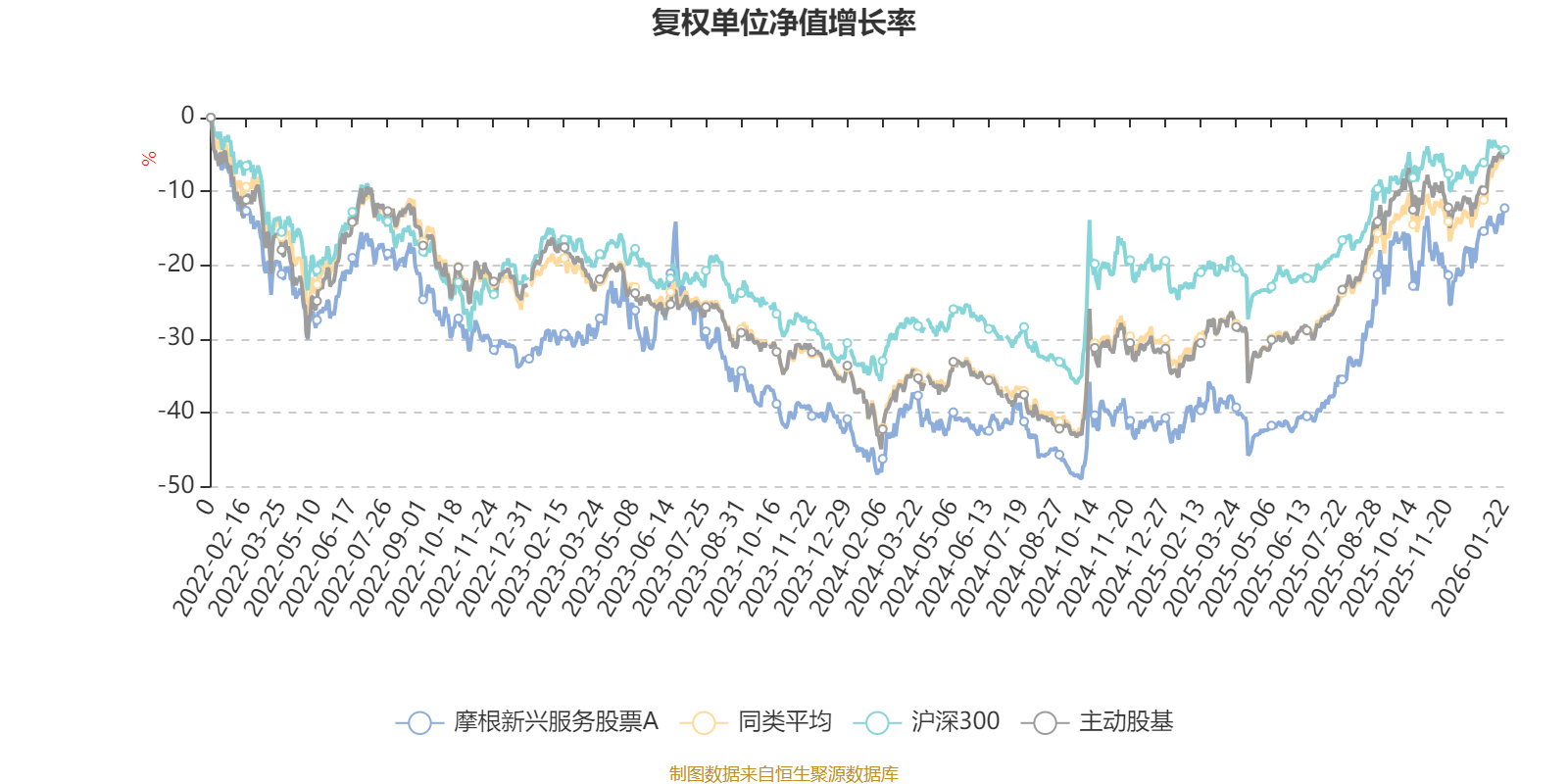 截至1月22日,摩根新兴服务股票A近三个月复权单位净值增长率为9.21%,位于同类可比基金68/121;近半年复权单位净值增长率为36.00%,位于同类可比基金34/121;近一年复权单位净值增长率为44.14%,位于同类可比基金49/119;近三年复权单位净值增长率为23.38%,位于同类可比基金44/89。