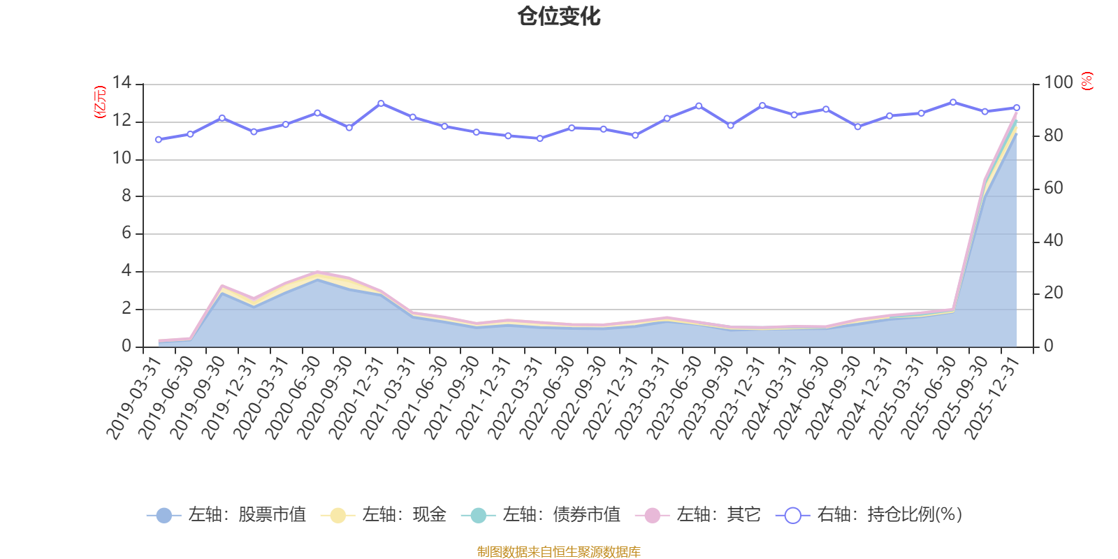 据定期报告数据统计,近三年平均股票仓位为88.91%,同类平均为88.36%。2025年上半年末基金达到93.03%的最高仓位,2019年一季度末最低,为78.83%。