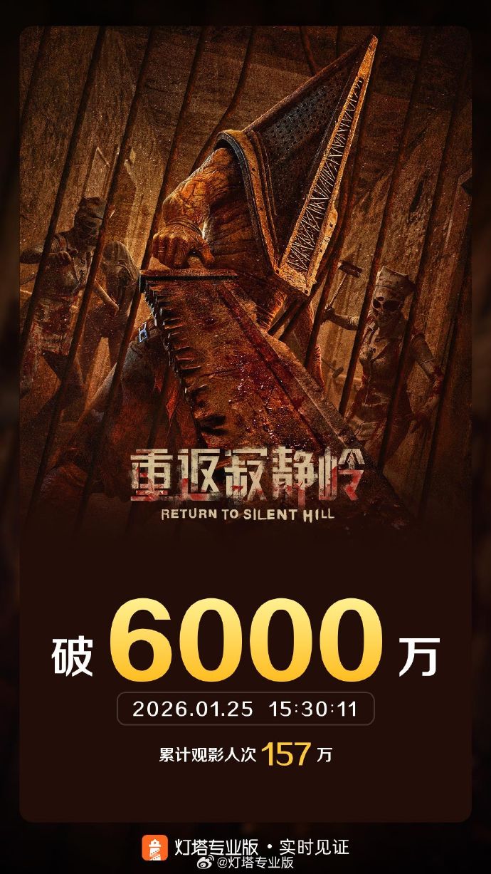 据灯塔专业版实时数据,截至1月25日15时30分,影片《重返寂静岭》内地票房突破6000万元。