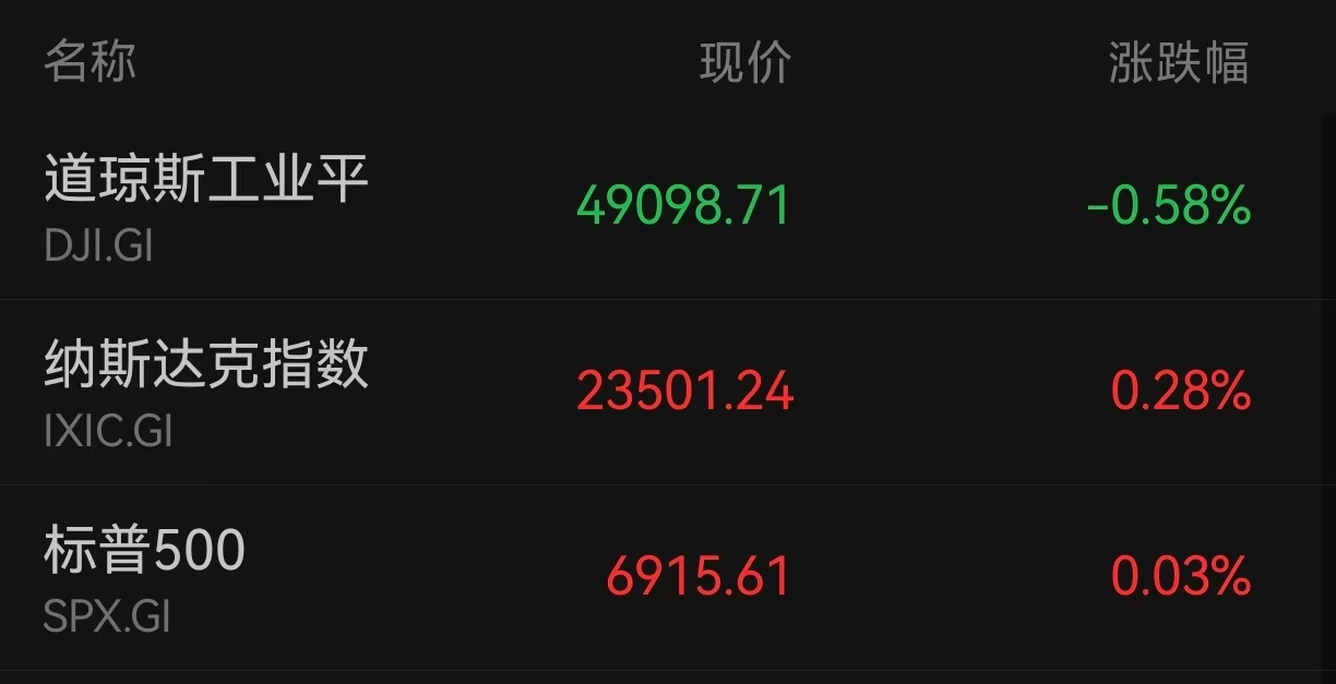当地时间上周五,美股三大指数收盘涨跌不一,道指跌0.58%,纳指涨0.28%,标普500指数涨0.03%。贵金属板块领涨,泛美白银涨超4%。科技股涨跌不一,微软、奈飞涨超3%,AMD、亚马逊涨超2%;英特尔跌超17%,创2024年8月以来最大单日跌幅。周线方面,道指本周累跌0.53%,纳指累跌0.06%,标普500指数累跌0.35%,三大指数均为连续第二周下跌。