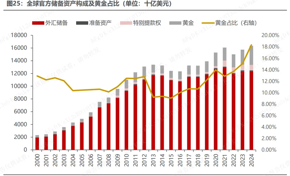 展望未来,我们认为黄金仍有增值空间,但也面临短期回调风险。一是,世界经济战略与安全风险仍存,避险情绪仍支持黄金走高;二是,美元资产的相对配置权重还在下降通道,黄金相对美元资产的配置价值还在提升;三是,美联储降息落地,但通胀仍具韧性,依旧支撑黄金作为抗通胀资产的价值。