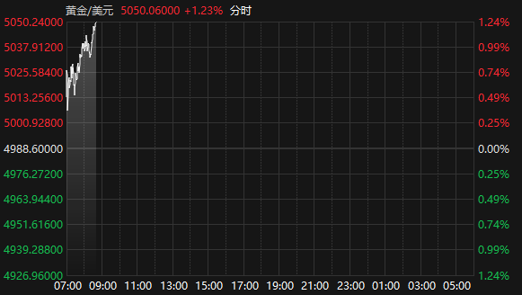 国际现货黄金站上5050美元/盎司关口 续创历史新高