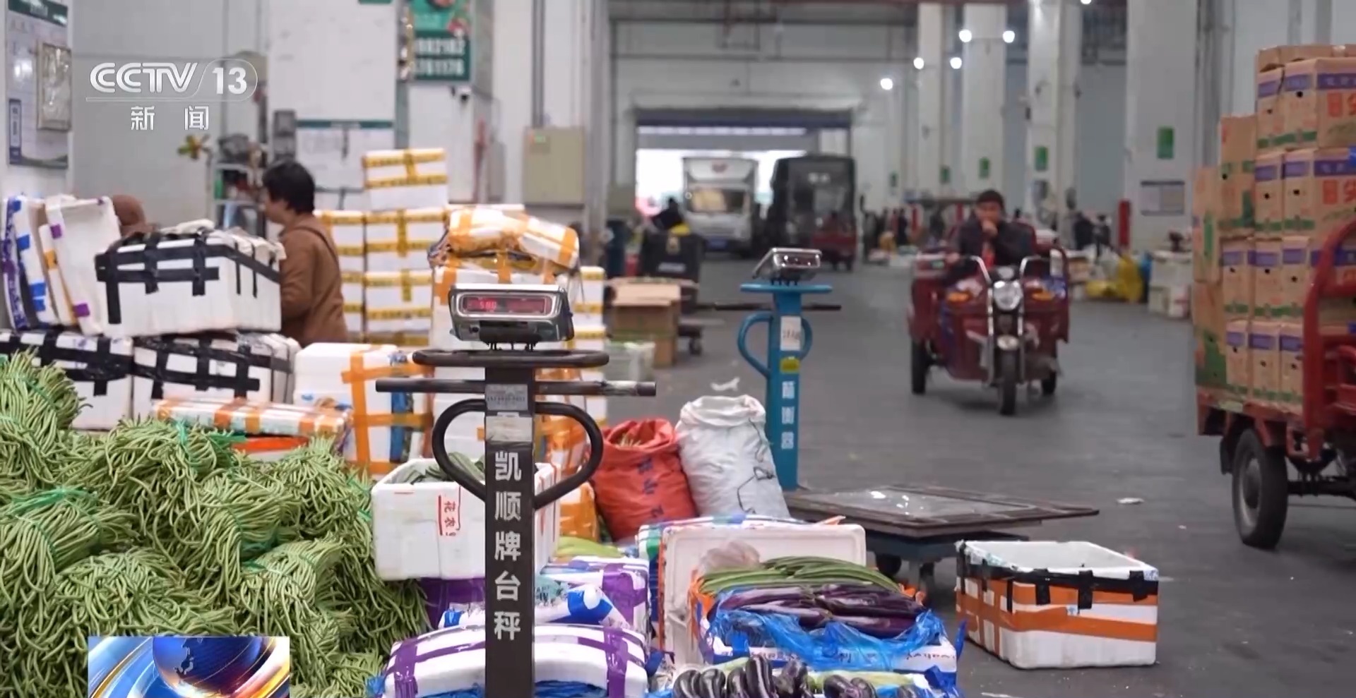 记者在海口江楠农产品批发市场看到,下午四点,来自河北、陕西等全国各地的货车正陆续抵达,本地的配送车辆也交织穿梭其中,不断有车辆驶入和离开。