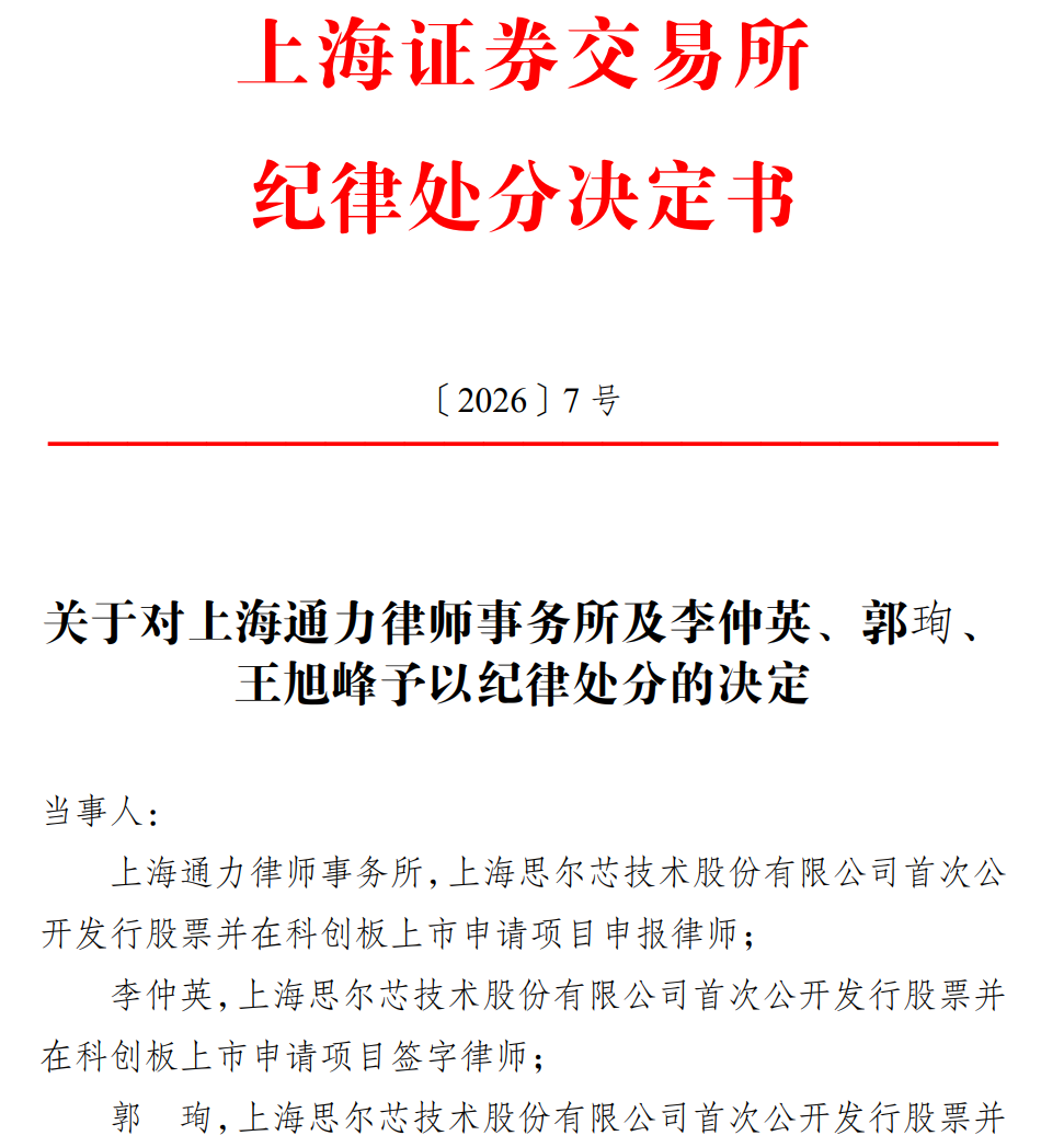 上海通力律所被通报批评,3名签字律师被公开谴责!涉思尔芯科创板IPO