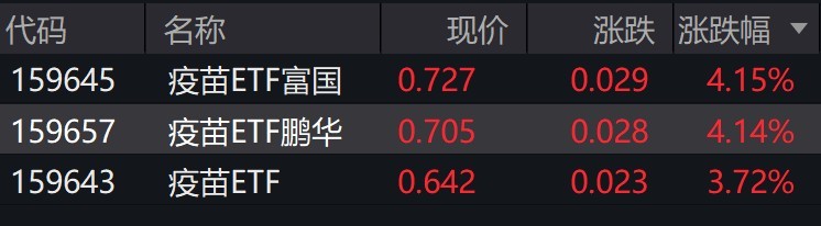 受盘面影响,疫苗相关ETF涨约4%。