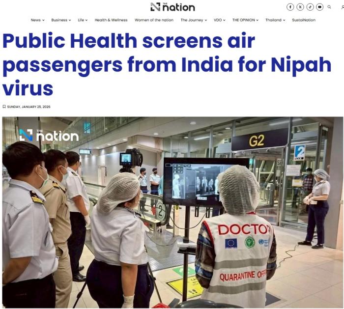 新加坡《海峡时报》报道称,相关筛查正在泰国素万那普和廊曼机场进行,重点关注来自西孟加拉邦的旅客。