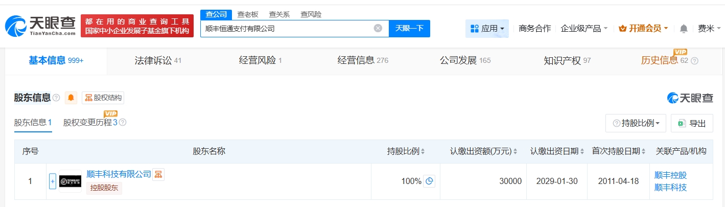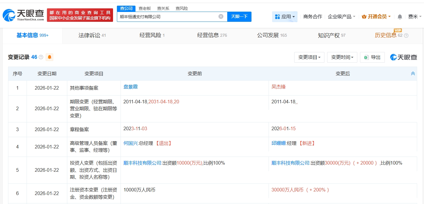 顺丰恒通支付公司增资至3亿元 增幅200%