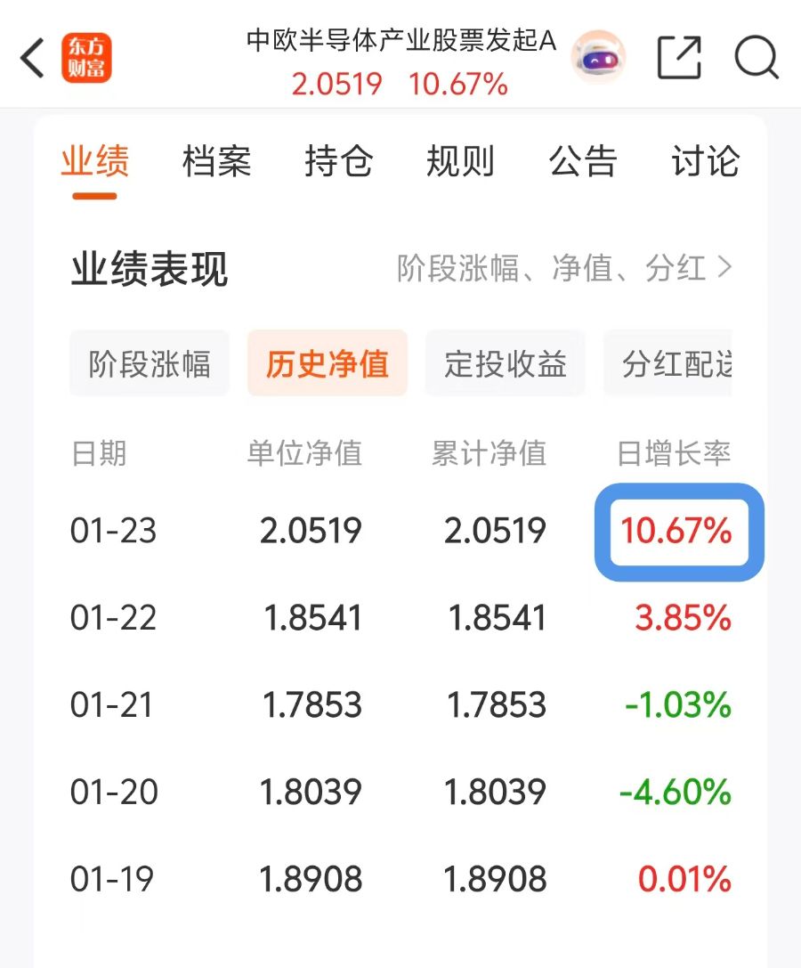 另外,说个有意思的事情,中欧半导体产业股票发起A基金(019759)上周五净值大涨超10%,截至1月23日,年初至今涨了31%,但是基准只有15%的涨幅。