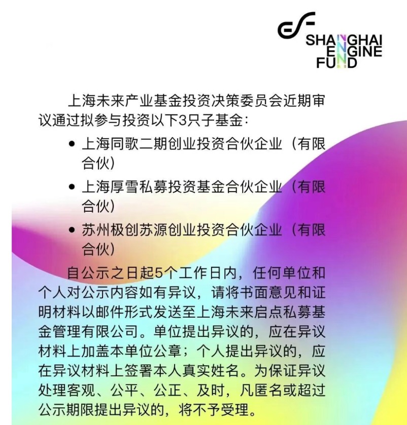 上海未来产业基金拟参与投资3只子基金