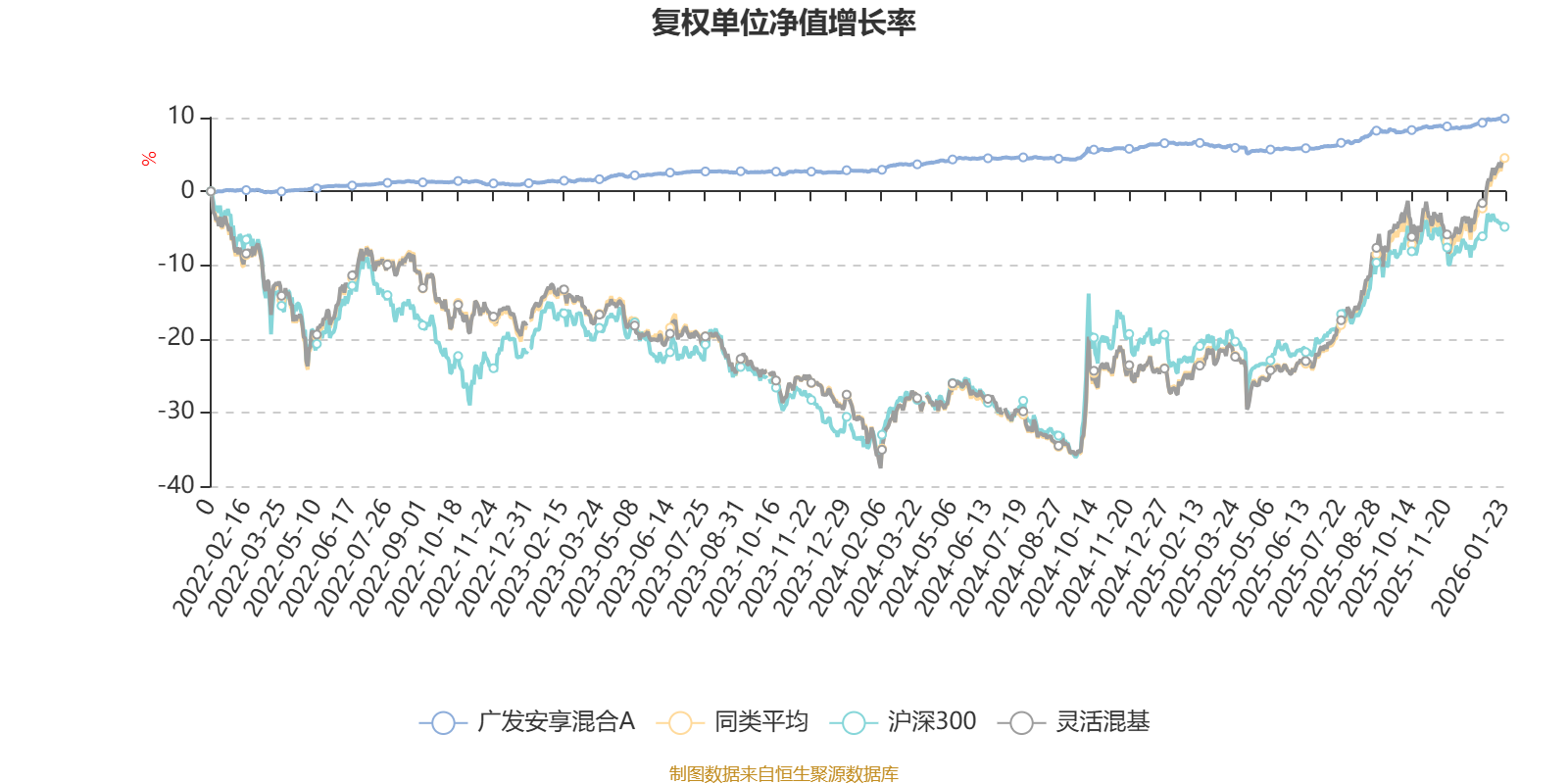 截至1月23日,广发安享混合A近三个月复权单位净值增长率为1.22%,位于同类可比基金1130/1286;近半年复权单位净值增长率为3.09%,位于同类可比基金1140/1286;近一年复权单位净值增长率为3.28%,位于同类可比基金1244/1286;近三年复权单位净值增长率为8.40%,位于同类可比基金858/1286。