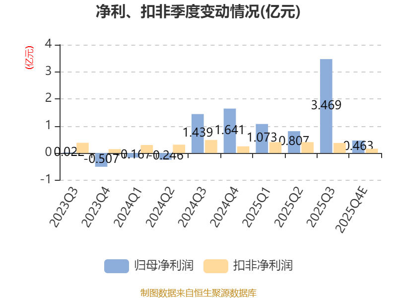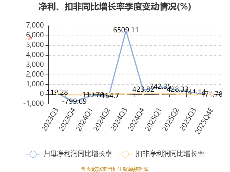据公告,公司2025年度归属于上市公司股东的净利润较上年同期大幅增长,主要原因为:本期非经常性收益较上年同期大幅增加,预计2025年度非经常性损益对净利润的影响金额为43300万元至46200万元,较上年同期(13308万元)大幅增加,主要系公司理财产品投资收益增加及持有的交易性金融资产公允价值变动收益增加所致,该事项属于非经常性损益。