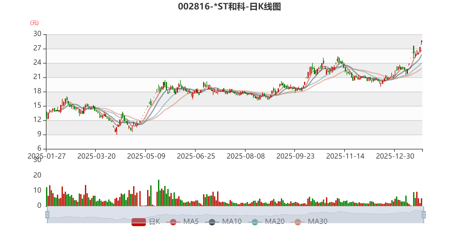 中证智能财讯 *ST和科(002816)1月26日晚间披露2025年度业绩预告,预计2025年实现营业收入2.6亿元至3.34亿元;归母净利润1550万元至2100万元,上年同期亏损5278.41万元;扣非净利润预计800万元至1200万元,上年同期亏损6324.08万元;基本每股收益0.155元/股-0.21元/股。以1月26日收盘价计算,*ST和科目前市盈率(TTM)约为136.52倍-184.97倍,市净率(LF)约12.39倍,市销率(TTM)约9.65倍。