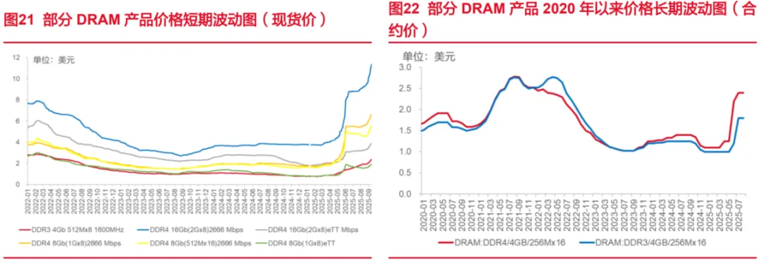存储全系产品价格2025年已出现较大幅度涨幅,2026年或进一步上涨,我们认为本轮价格上涨则是由AI服务器和通用服务器共同驱动,还存在着结构性的产能转换和多个维度的需求竞争,情况更为复杂,短缺和涨价或将会持续更长时间。