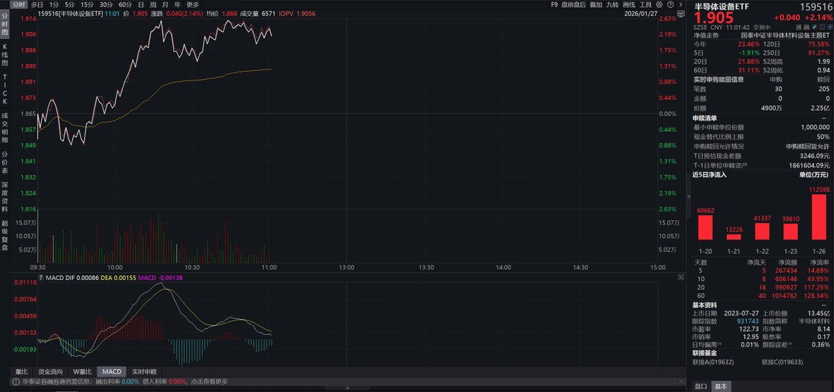 半导体设备ETF(159516)覆盖设备与材料龙头,规模大、流动性佳,是高效布局设备赛道的工具。板块当前估值分位低于芯片设计类指数,具备配置性价比。