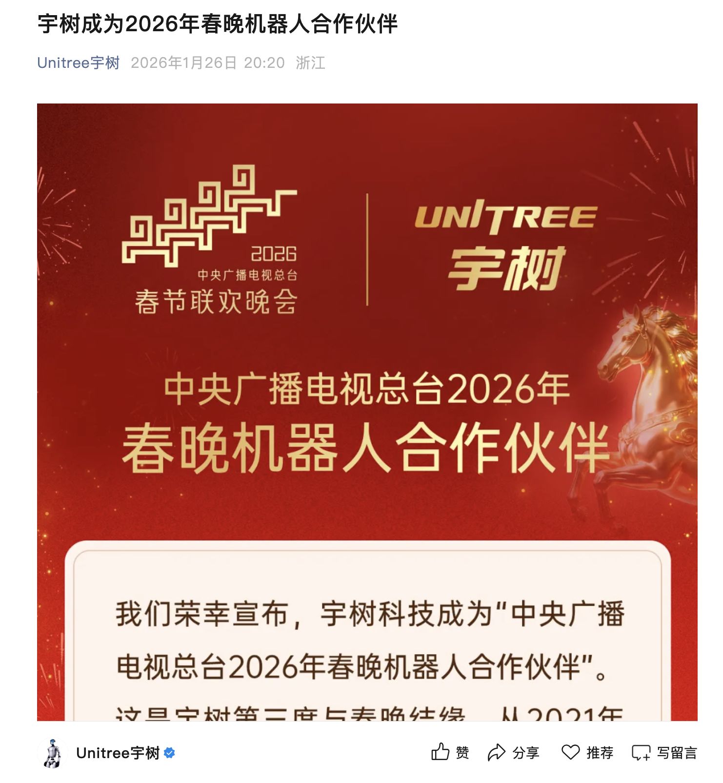 宇树科技官宣!