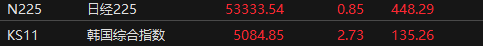 上证报中国证券网讯 1月27日,日韩股市收盘齐涨。日经225指数收盘涨0.85%,报53333.54点;韩国综合指数涨2.73%,报5084.85点。