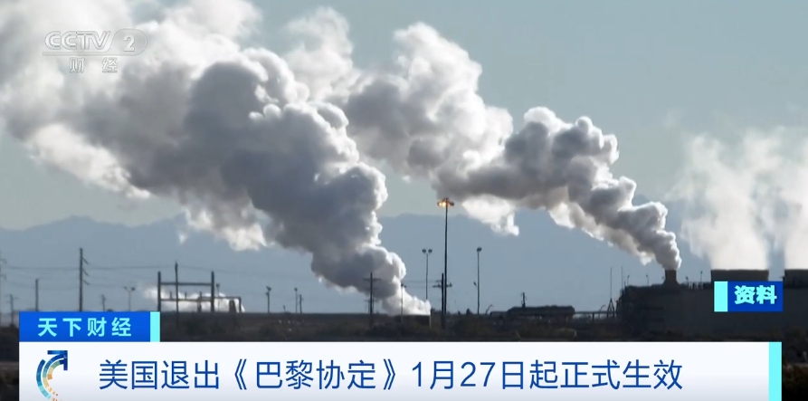 美国总统特朗普在2025年1月20日就任当天签署行政令,宣布美国将退出《巴黎协定》。联合国在2025年1月28日宣布,已收到美国退出旨在应对气候变化的《巴黎协定》的通知,退约将在2026年1月27日起正式生效。