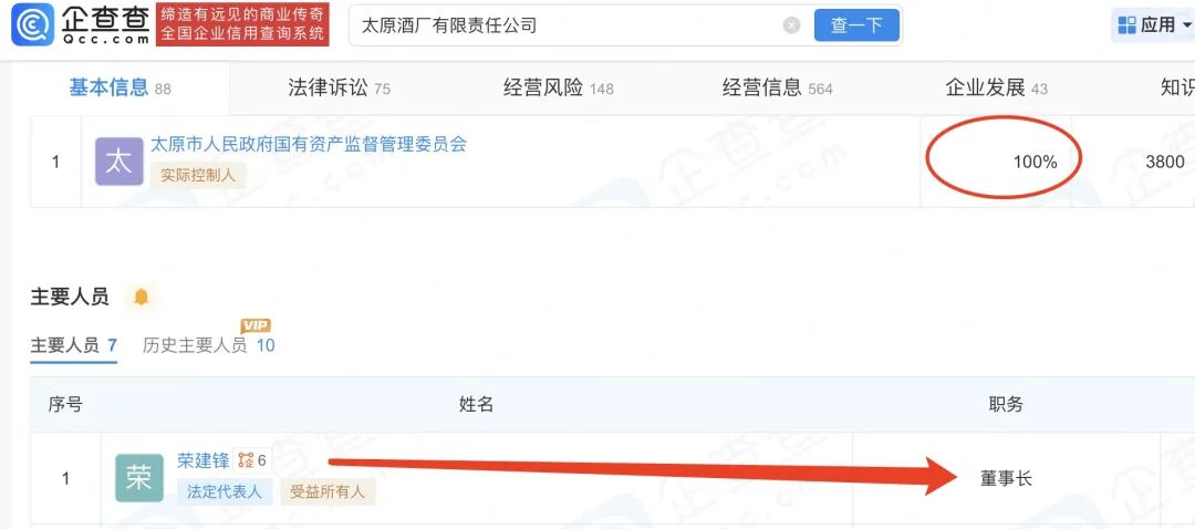 根据企查查数据显示,太原酒厂有限责任公司成立于1998年4月,注册资本为3800万元。目前,太原市国资委持有太原酒厂100%股权,该酒厂属于市属国企,其董事长为荣建锋;太原酒厂涉及司法案件30起,其中作为原告20起,作为被告3起,其他当事人7起。