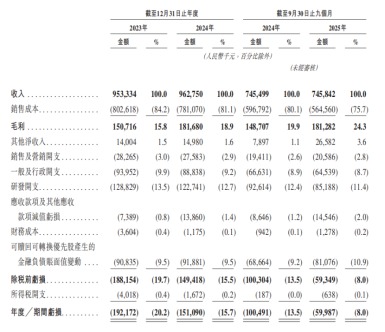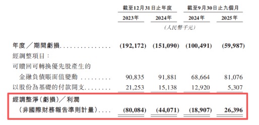 但需要注意的是,这一盈利是经调整后的结果,剔除了股权激励、上市费用等非现金或一次性开支,若按国际财务报告准则(IFRS)口径计算,公司2025年前三季度仍净亏损约6000万元,尚未实现真正意义上的全面盈利。