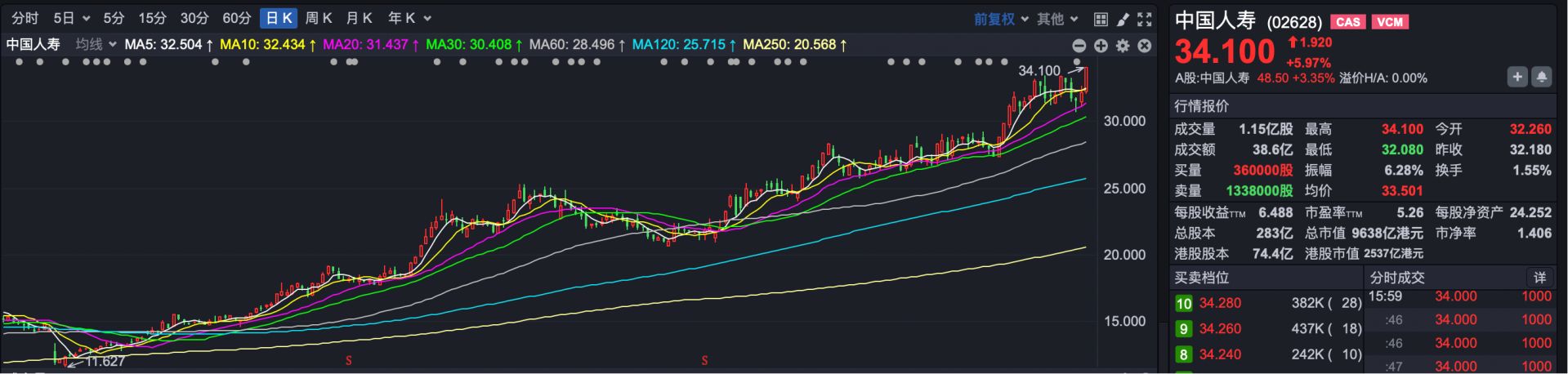 市场热点方面,保险股全线走强,对恒指起到重要拉升作用。