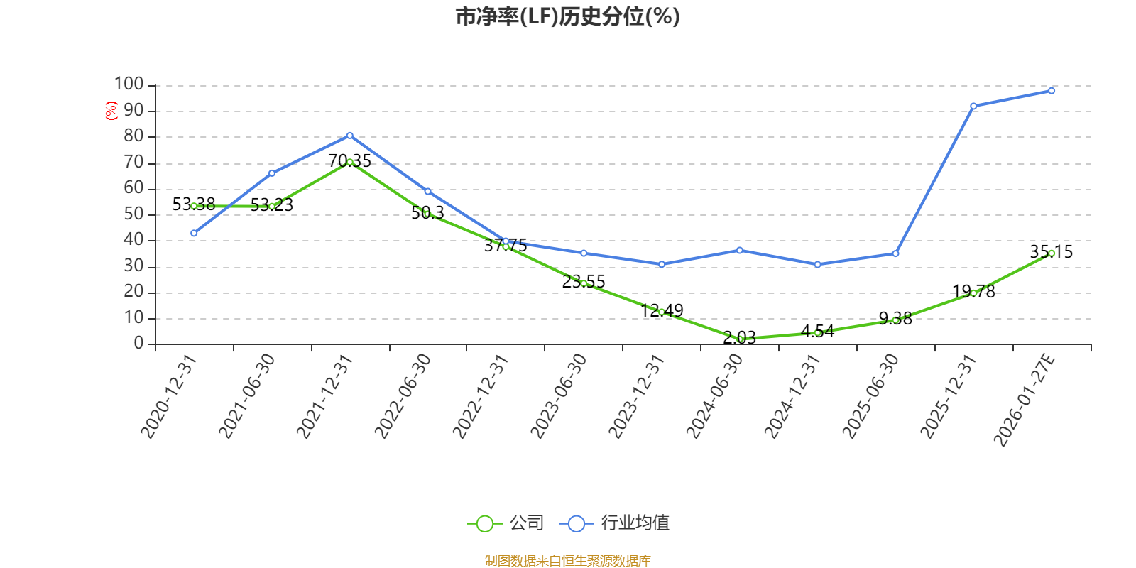 市盈率、市净率为负时,不显示当期分位数,会导致折线图中断。
