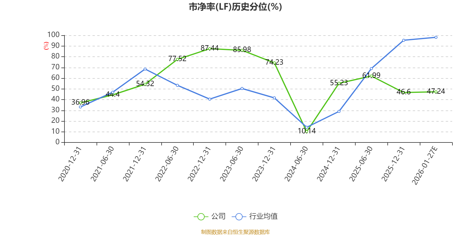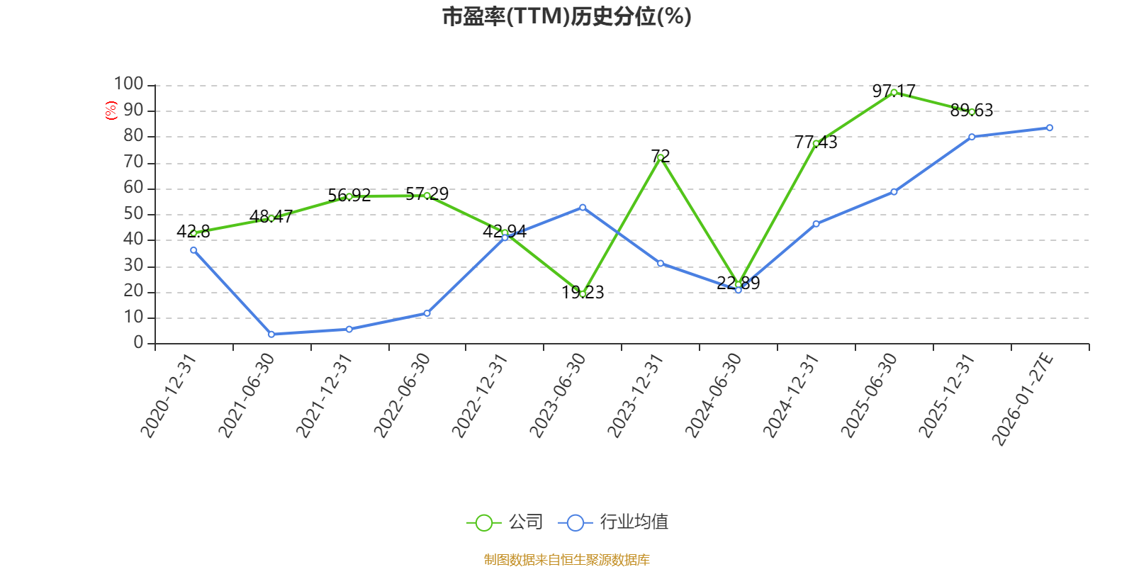市盈率、市净率为负时,不显示当期分位数,会导致折线图中断。