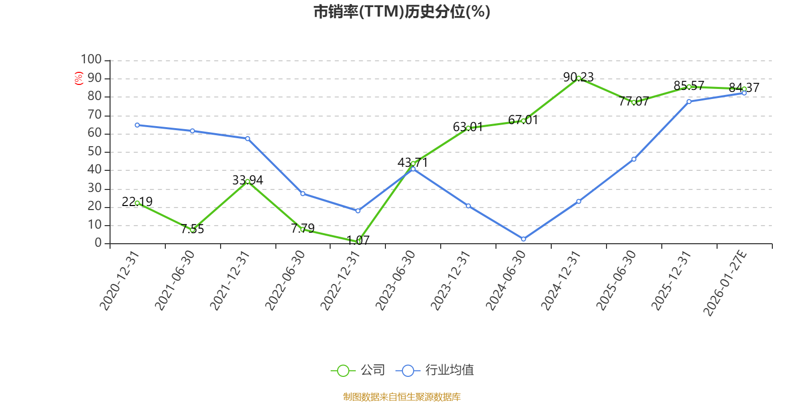 文中市盈率和市销率采用TTM方式,即以截至最近一期财报(含预报)12个月的数据计算。市净率采用LF方式,即以最近一期财报数据计算。三者的分位数计算区间均为公司上市以来至最新公告日。