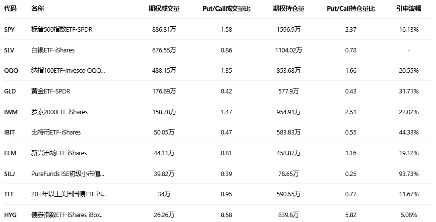 美东时间1月26日,美股指数期权市场成交量下滑,共成交446万份合约。看跌/看涨成交比上升,达到1.15。