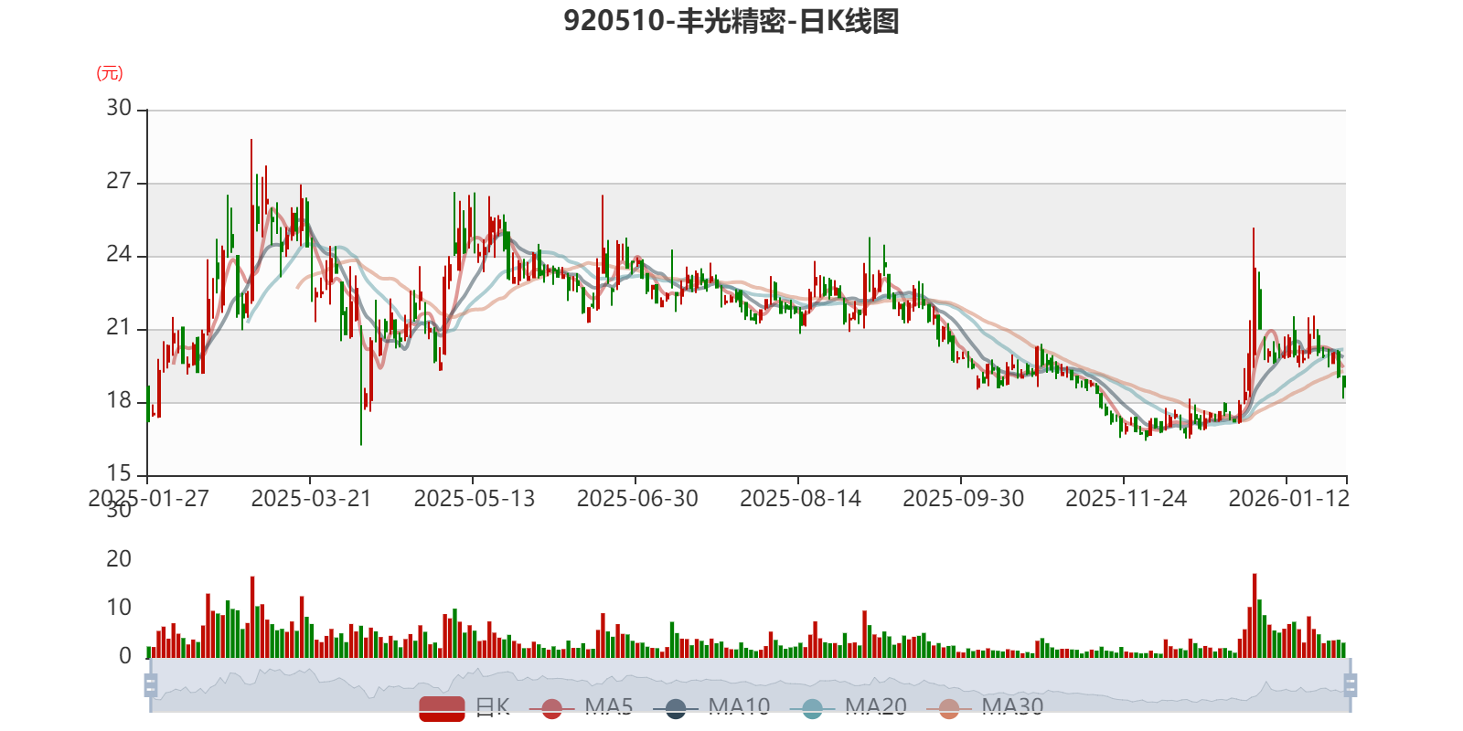 中证智能财讯丰光精密(920510)1月27日晚间披露2025年度业绩预告,预计2025年归母净利润亏损1500万元至1800万元,上年同期盈利2105.68万元。以最新收盘价计算,市净率(LF)约8.56倍,市销率(TTM)约16.65倍。