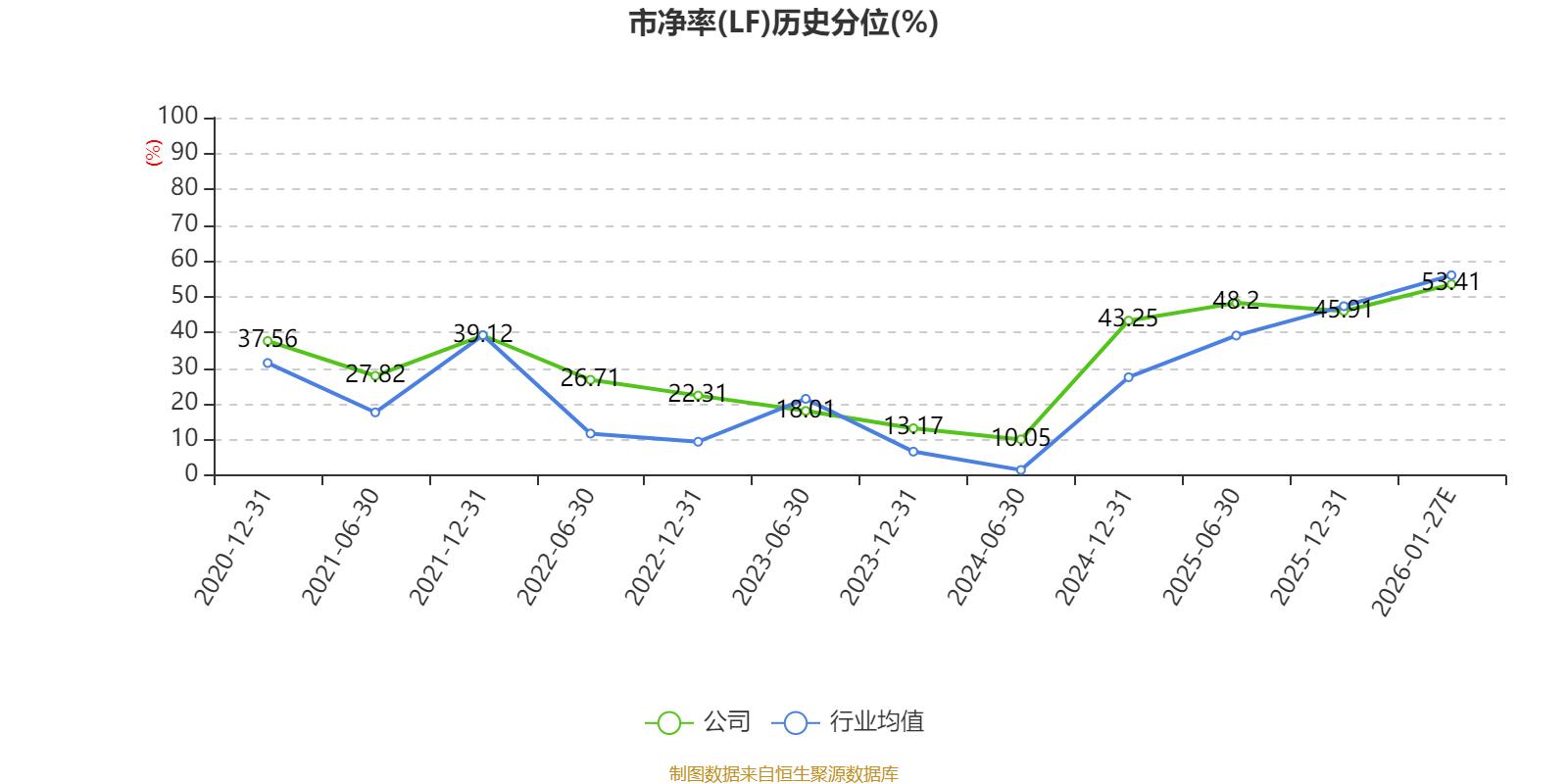市盈率、市净率为负时,不显示当期分位数,会导致折线图中断。