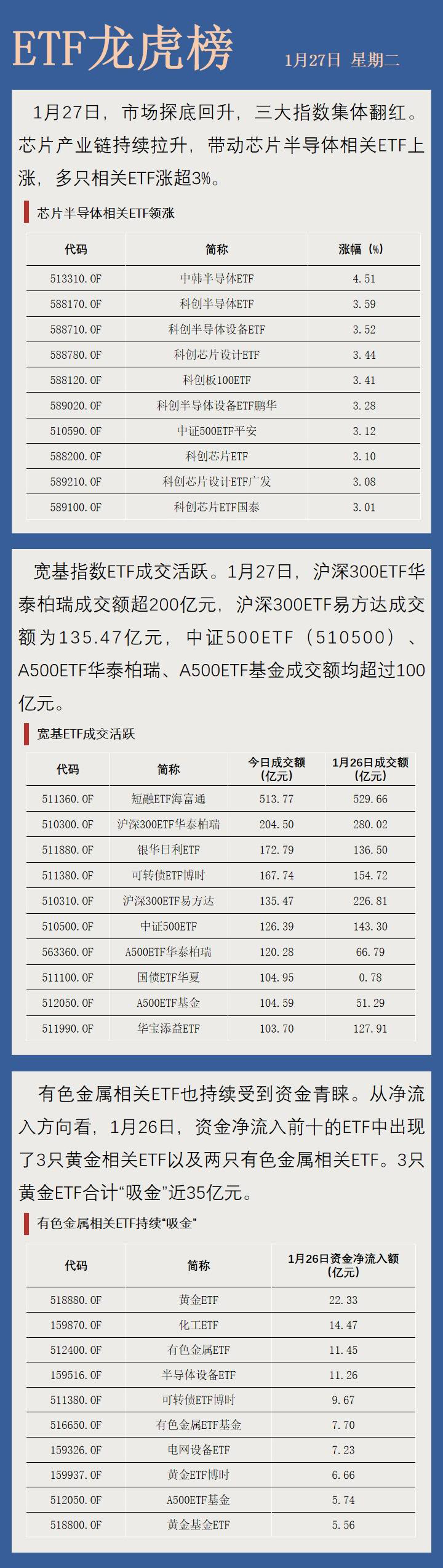 【ETF龙虎榜】芯片半导体相关ETF 上涨!