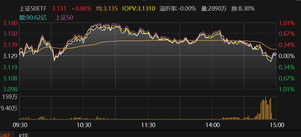 类似的还有易方达沪深300ETF,全天成交额为135亿元,最后半小时成交额为102亿元。此外,华夏上证50ETF全天成交额为90.62亿元,最后半小时成交额为54.79亿元。
